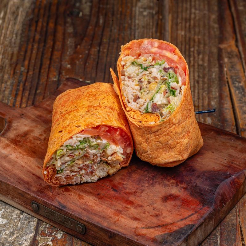 Turkey, bacon, cheddar, sea salt chips, lettuce, pickle, honey mustard, guacamole, sundried tomato wrap
